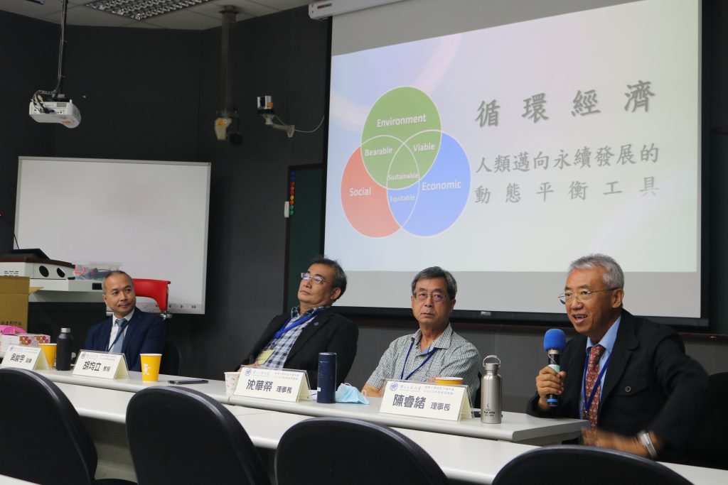 胡均立教授開場即強調,循環經濟有助企業提升經營效率和形象,對於企業相當重要;吳副總分享自身企業如何運用微生物技術平台,將有機廢棄物資源化,應用於農業種植,他特別指出,做循環經濟,技術一定要到位,除此之外,還要有相關法規與制度的配套;沈理事長除了分享如何應用環境會計專業,落實循環經濟理念,還給予在座以管理背景為主的校友相當實際的下手處:「技術或許很難快速達標,但管理制度卻可以很快改善。」ESG評估系統的導入即為一例,他也建議聽眾,比起自行開發相關回收技術,不妨思考公司未來所開發的產品,如何能在環保業者手中有效地再利用。陳理事長總結,以他三十年來在投資界的觀察,綠色及環保無疑是巨大商機,交大經管所在此起步階段,可以做為平台串起產業、學術界的聯盟,透過發表中立客觀的科學研究,呼籲政府介入企業在回收廢棄物與環境永續上的改革。