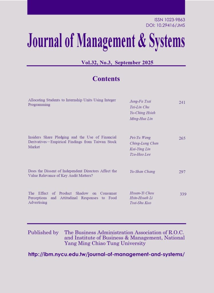 Executive Editors:Yung-Ming Li, Hao-Chun Chuang, Chih-Fong Tsai, Jiuh-Biing Sheu, Jin-Li Hu, Hung-Chang Chiu, Chieh-Peng Lin, Pin-Huang